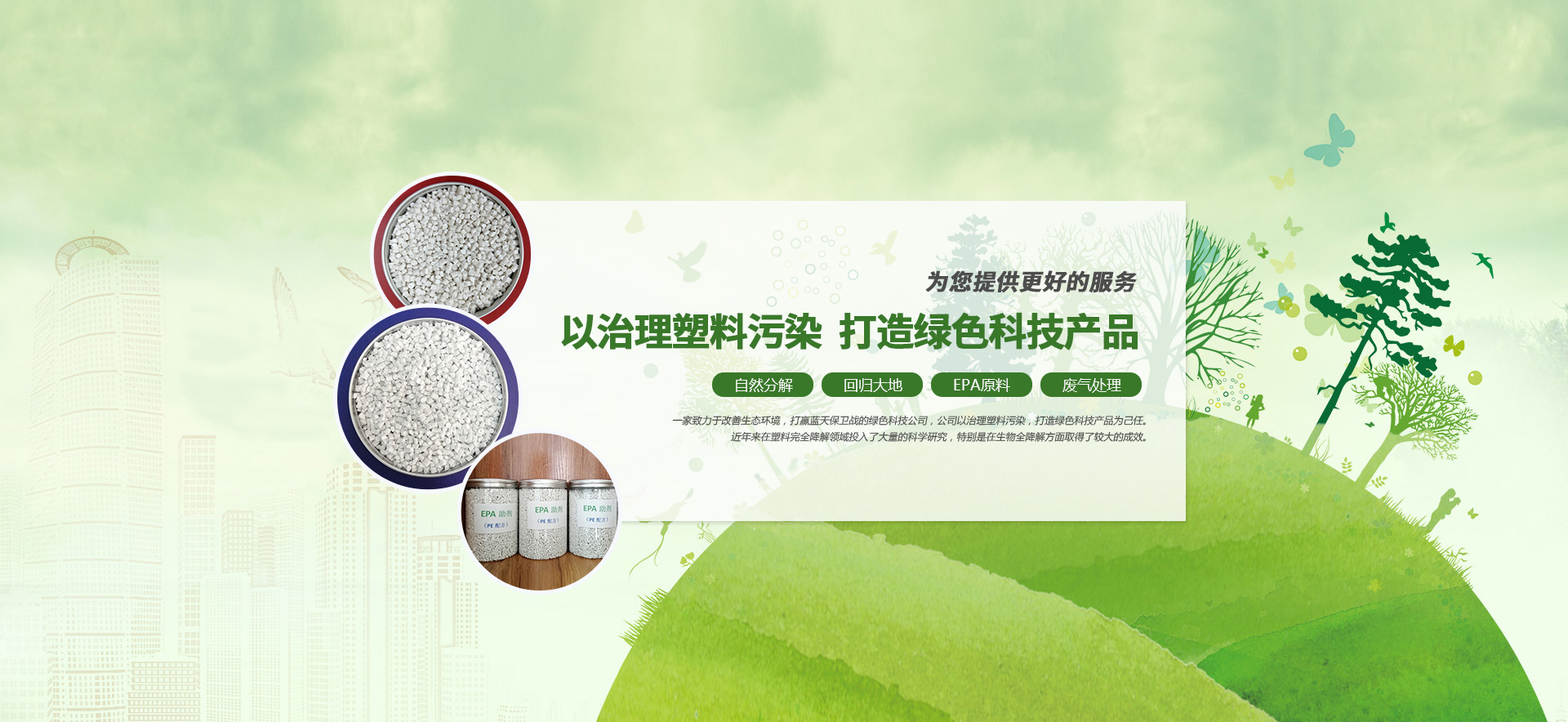 “生物降解添加顆粒”及“ 可降解塑料制品”等綠色環保產品。